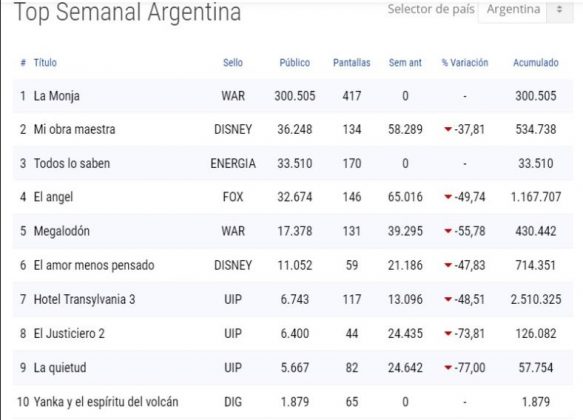 A lo largo del fin de semana, la película de terror se convirtió en la más elegida por los argentinos, alcanzando la cifra de 300.505 espectadores.