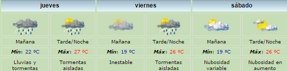 Para la tarde de hoy se espera el cielo nublado, con probabilidad de tormentas fuertes y vientos moderados del noreste. La máxima será de 26°. Las lluvias continuarán hasta el viernes según el Servicio Meteorológico Nacional (SMN).