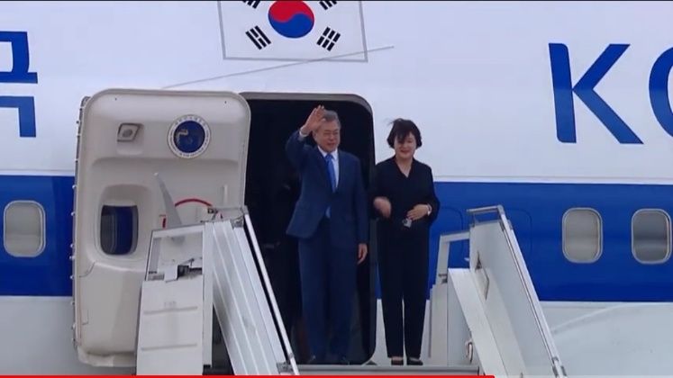 El presidente de la República de Corea llegó hoy al país, poco después de las 8.35, al aeropuerto internacional de Ezeiza.