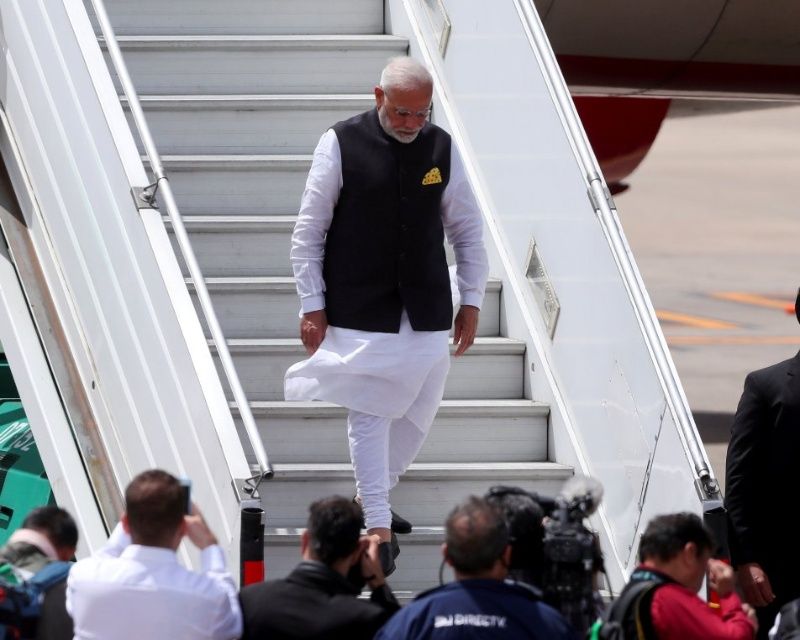 El primer ministro de India arribó procedente de Nueva Delhi poco después de las 10:30.