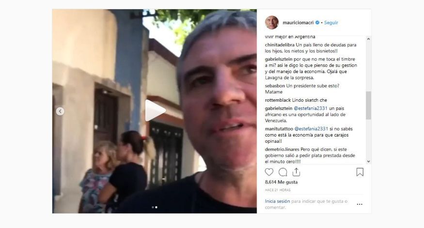 En su cuenta de instagram, el presidente Mauricio Macri enfureció a los usuarios tras subir un video donde se lo ve haciendo campaña en Santa Fe. Por lo qué generó polémica.