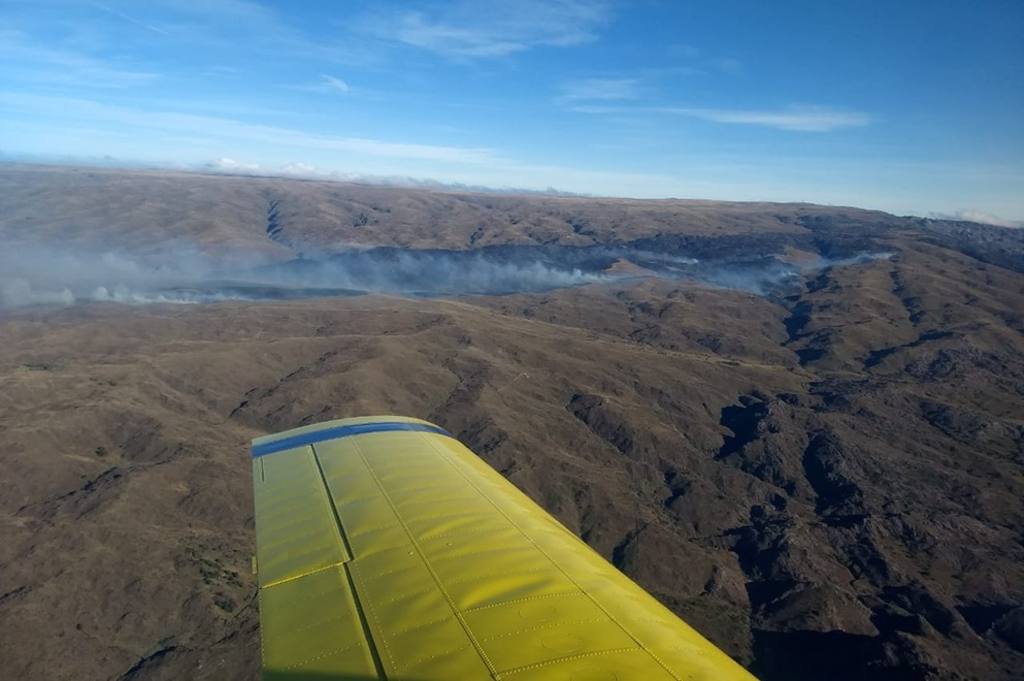 Dos aviones hidrantes y un helicóptero ayudan a los bomberos que, por las malas condiciones climáticas, aún no logran sofocar el fuego. Más de 65 Bomberos trabajan en la zona.