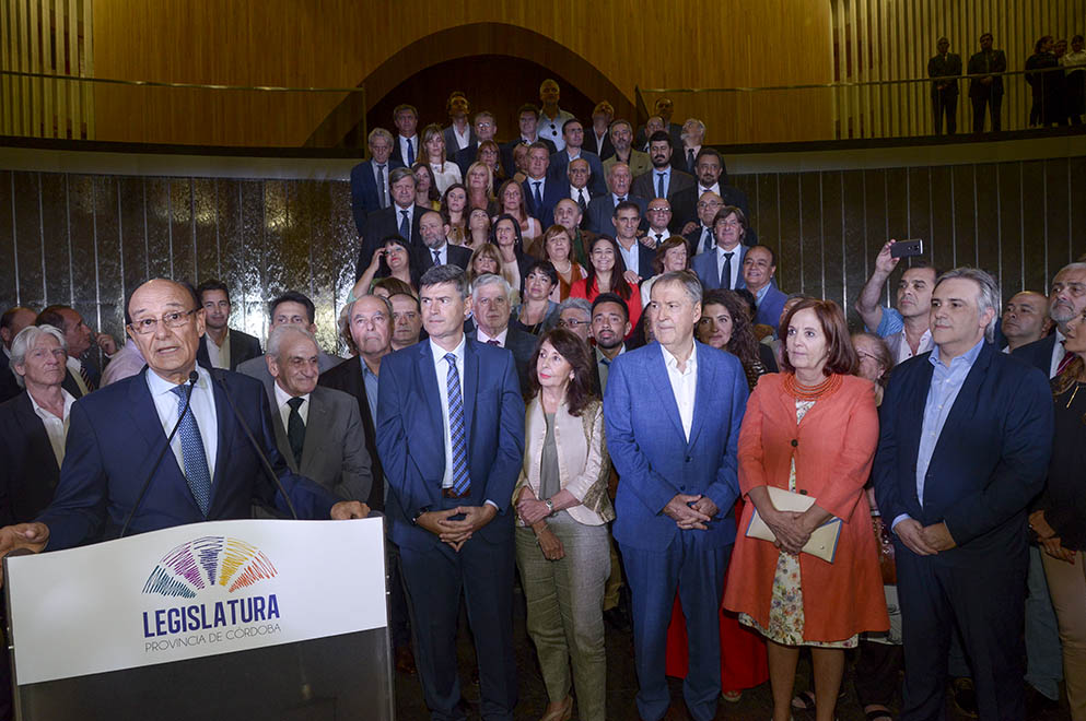 “En este edificio que es la cuna de la democracia, donde el pueblo debe expresar sus diferencias, disensos y consensos, ojalá encontremos el ámbito adecuado para continuar trabajando como lo hemos venido haciendo en Córdoba hasta hoy. Con diferencias a veces marcadas, siempre claras, sostenidas con respeto, y un juego de la democracia que ha tenido lugar en aquellas históricas paredes y que, seguramente, seguirá a partir de hoy en este recinto que dejamos inaugurado”, cerró el presidente provisorio de la Legislatura.