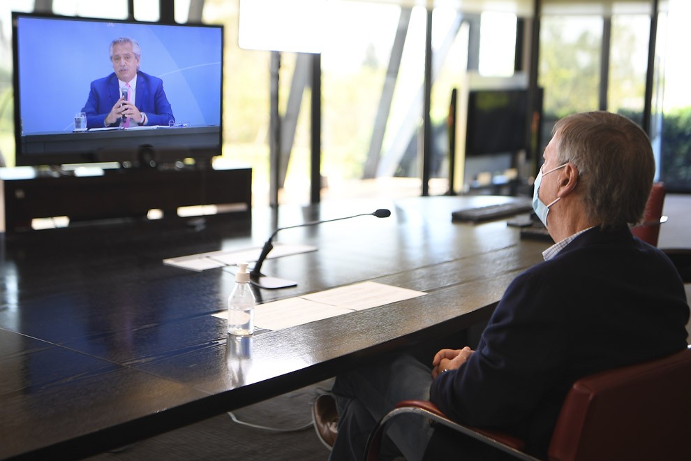 A través de teleconferencia el Jefe de Estado y el mandatario cordobés ponderaron los trabajos sobre la ruta 158 a la que calificaron de estratégica en el marco del corredor bioceánico que une Brasil, Argentina y Chile.
