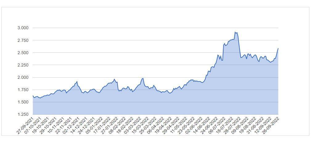 El riesgo país a casi 2600 puntos se ubica igualmente lejos de los casi 3000 puntos a los que se encaminó durante la gestión de Silvina Batakis en el Ministerio de Economía.