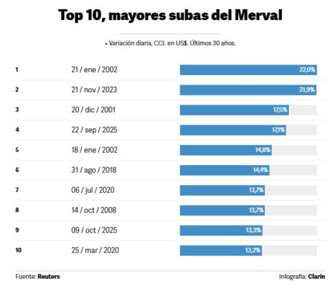 El índice Merval rebota casi 32% medido en dólares, con lo que borra casi la totalidad de la caída que había acumulado este año. Si esta tendencia se extiende hasta el final de la rueda, se trata de la suba más alta para un solo día en los últimos 30 años.