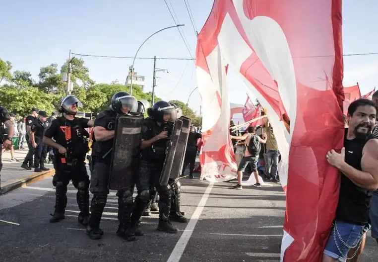La tensión se intensificó alrededor de las 8.30, cuando columnas del Frente de Izquierda y distintos gremios intentaron bloquear completamente el acceso al centro. Tras los enfrentamientos, se reportaron tres personas detenidas y diez policías heridos.