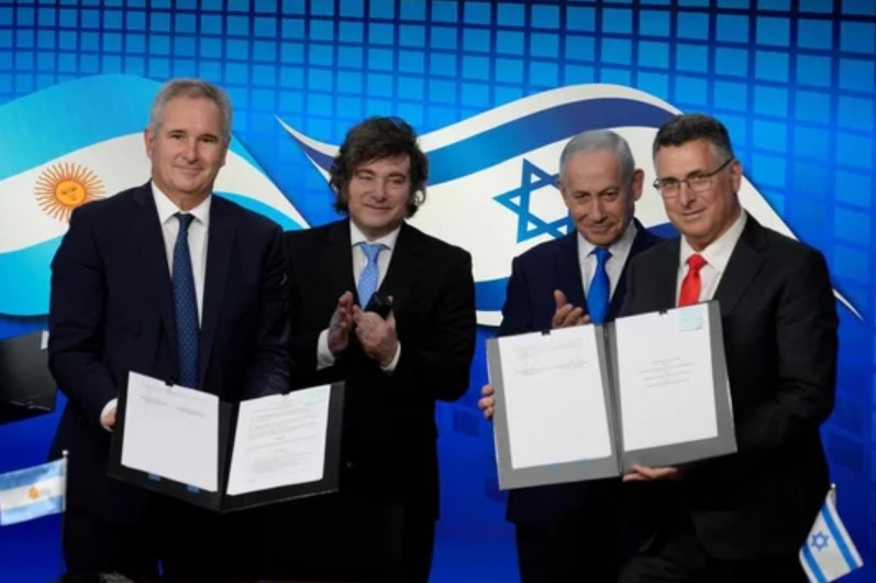 El canciller argentino Pablo Quirno anunció que el Presidente Javier Milei y del Primer Ministro Benjamin Netanyahu firmaron “tres Memorandos de Entendimiento” y confirmó que ambas naciones trabajan en la lucha contra el terrorismo, a favor de la innovación y la productividad y en apoyo a empresas israelíes.
