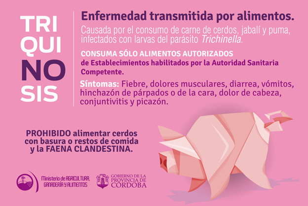 Específicamente en lo que respecta a la triquinosis, la Secretaría de Alimentos está trabajando en distintos puntos de la provincia. El martes entregó en Oncativo un kit para la detección del parásito Trichinella spp, iniciativa que se replicará en los próximos días ya que tiene 20 equipos para otros tantos municipios y hay 20 más en proceso de adquisición.