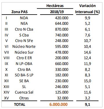 Por otro lado, la superficie total fue de 6 millones de hectáreas, un 35% más que el promedio de las últimas cinco campañas. A continuación se pueden ver las regiones que más incrementaron la participación de cereal: