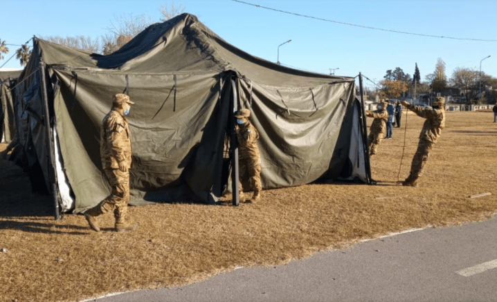 El Ejército montó este martes un hospital de campaña en Alta Gracia con el fin de reforzar el sistema sanitario frente a la segunda ola de coronavirus que golpea a todo Córdoba. Este nosocomio móvil entrará en funcionamiento a partir de este miércoles.
