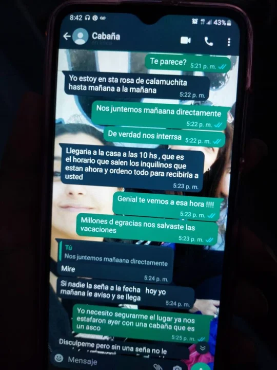 Mediante internet y Whatsapp, los interesados hablaban con la persona que supuestamente alquilaba la casa y coordinaban el día del ingreso. De los ocho damnificados, tres depositaron en un CBU el dinero correspondiente de la seña.