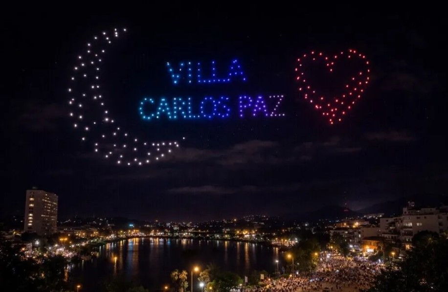 El show de drones previsto para este fin de semana en el centro de Villa Carlos Paz fue reprogramado por las condiciones meteorológicas y se realizará finalmente el próximo sábado 28 a las 23.00, en la peatonal del Paseo del Centro.