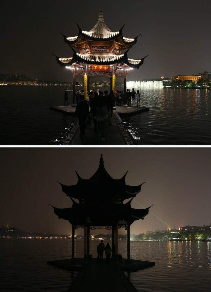 Uno de los lugares más emblemáticos de Nueva York, Times Square, también se sumó al apagón. Y en la provincia de Zhejiang, China, un pabellón queda completamente a oscuras para el evento.