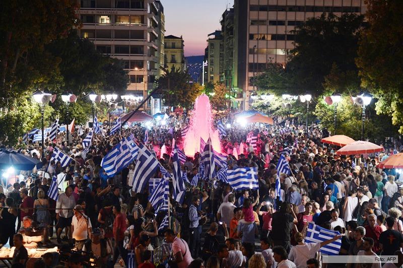 En un ambiente de alegría y armados de orgullo, los griegos bailaban, cantaban y aclamaban al primer ministro heleno, Alexis Tsipras.