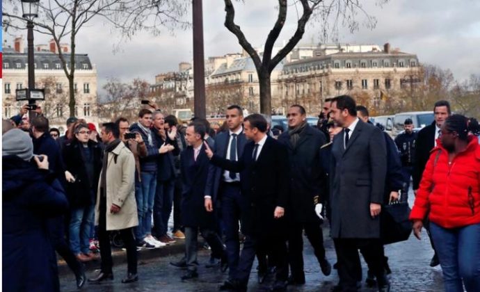 Macron, acompañado del ministro del Interior, Christophe Castaner, se dirigió el Arco del Triunfo, icónico monumento parisino y centro de las protestas, y rindió homenaje a la tumba del soldado desconocido, que representa a todos los franceses muertos en la Primera Guerra Mundial, ensuciada ayer por los alborotadores que dejaron sobre ella latas de cerveza y otros objetos.