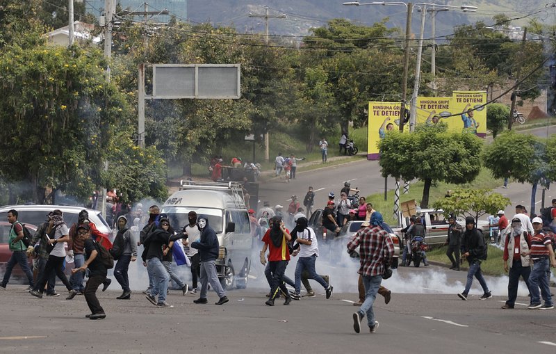 Las protestas para exigir la renuncia del presidente Juan Orlando Hernández se tornaron violentas el jueves cuando la policía hondureña usó gas lacrimógeno para dispersar a cientos de manifestantes en la capital.