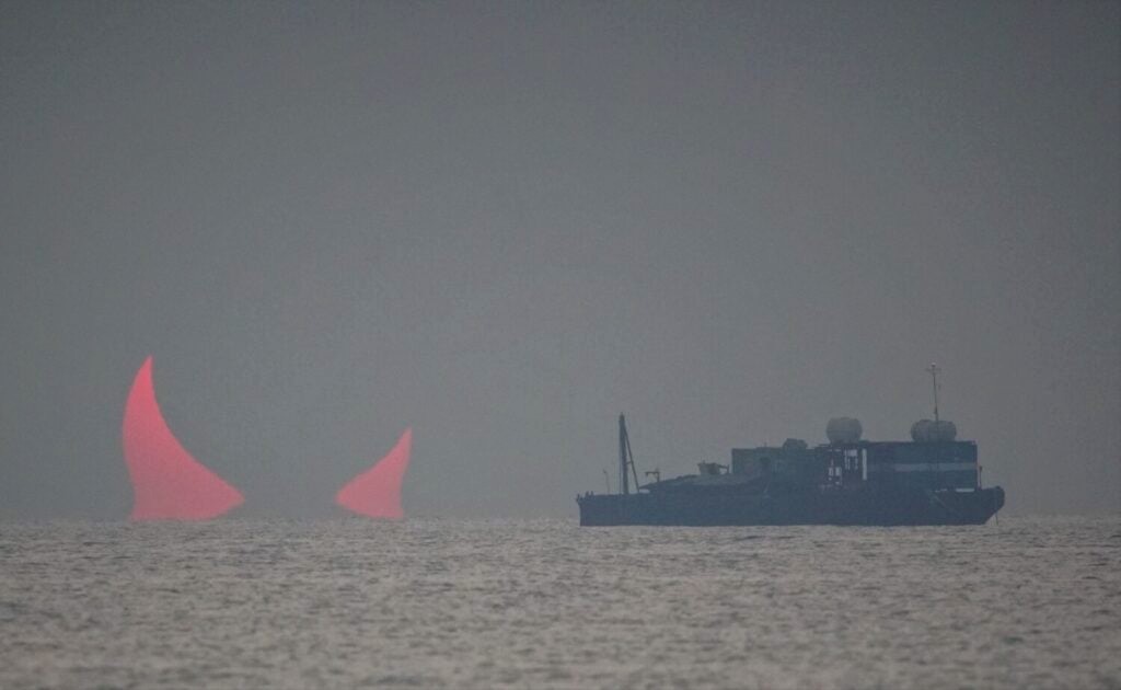 La secuencia al inicio no se entiende y parece que están emergiendo unos cuernos del mar. Pero con otras imágenes que Chasiotis sacó, se puede entender mejor cómo se están moviendo el Sol y la Luna.