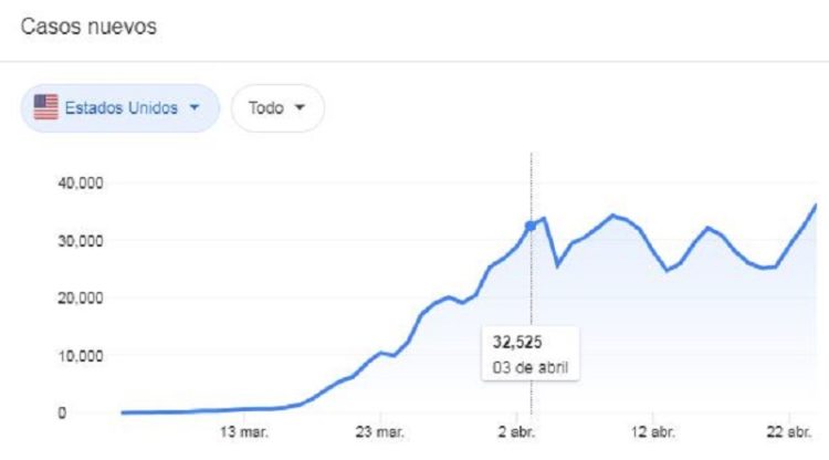 Según información de la Universidad de Johns Hopkins, Estados Unidos registró, desde el inicio de la pandemia, un total de 900.000 casos y más de 53.000 fallecidos, marcando con estas cifras el brote de Covid-19 más mortal de todo el mundo.