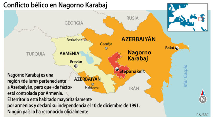 Ambas exrepúblicas soviéticas se disputan este territorio poblado y controlado por una mayoría armenia, pero reconocido internacionalmente como parte de Azerbaiyán.