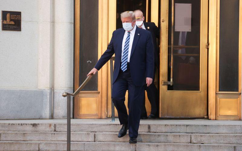 El domingo, también dejó su habitación en el hospital para ser trasladado en una caravana a fin de saludar a sus seguidores congregados fuera del centro médico. Vestido con una chaqueta de traje, camisa pero sin corbata y con una mascarilla, Trump realizaba su primera aparición pública desde el viernes.