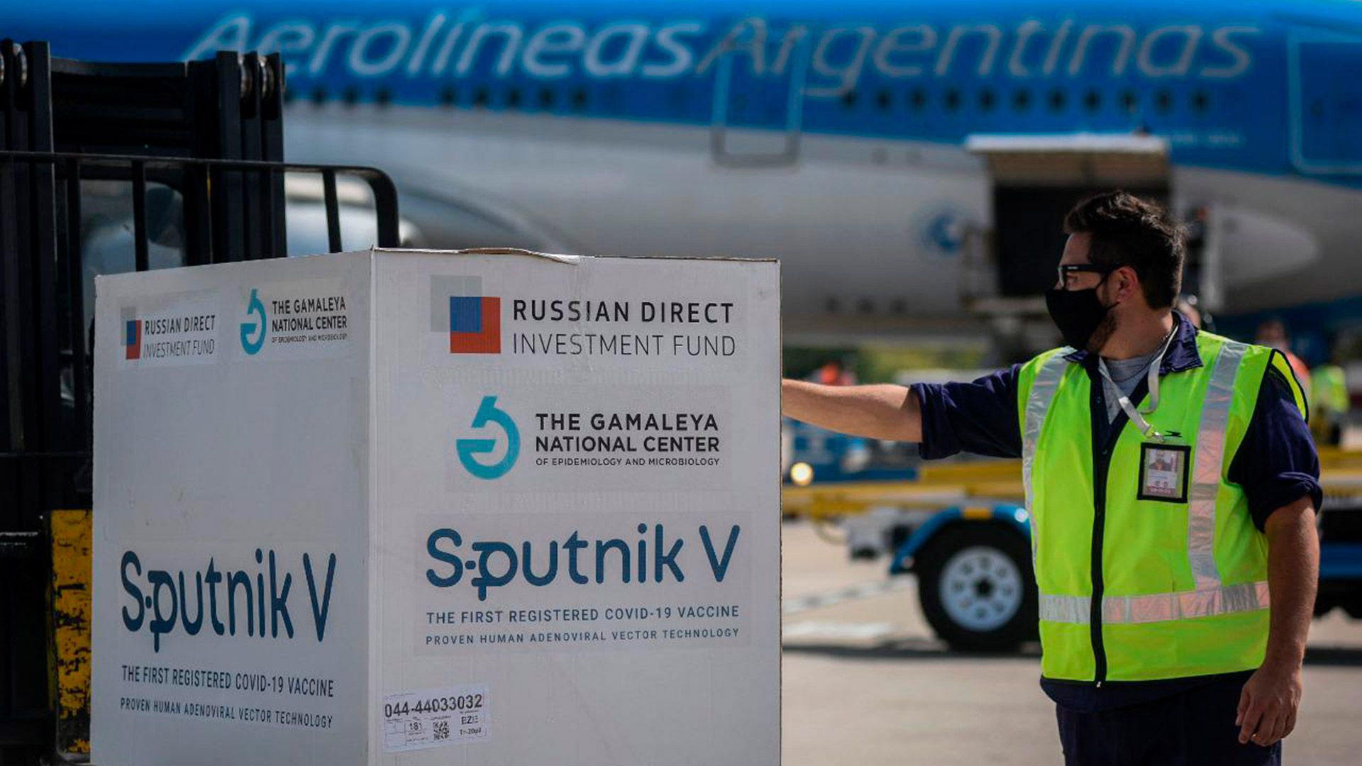 Un lote de vacunas Sputnik V en el aeropuerto de Ezeiza