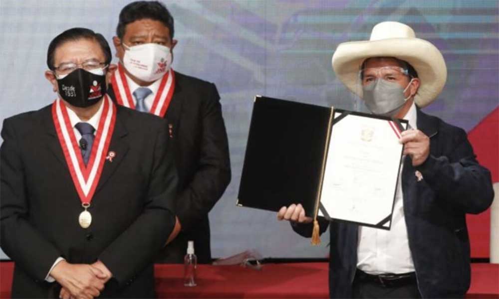 Pedro Castillo Terrores, docente y exdirigente sindical de 51 años, jura a las 9 del miércoles como presidente de la República del Perú para el periodo 2021-2026, en el mismo día del Bicentenario de la Independencia del país, proclamada el 28 de julio del 2021.