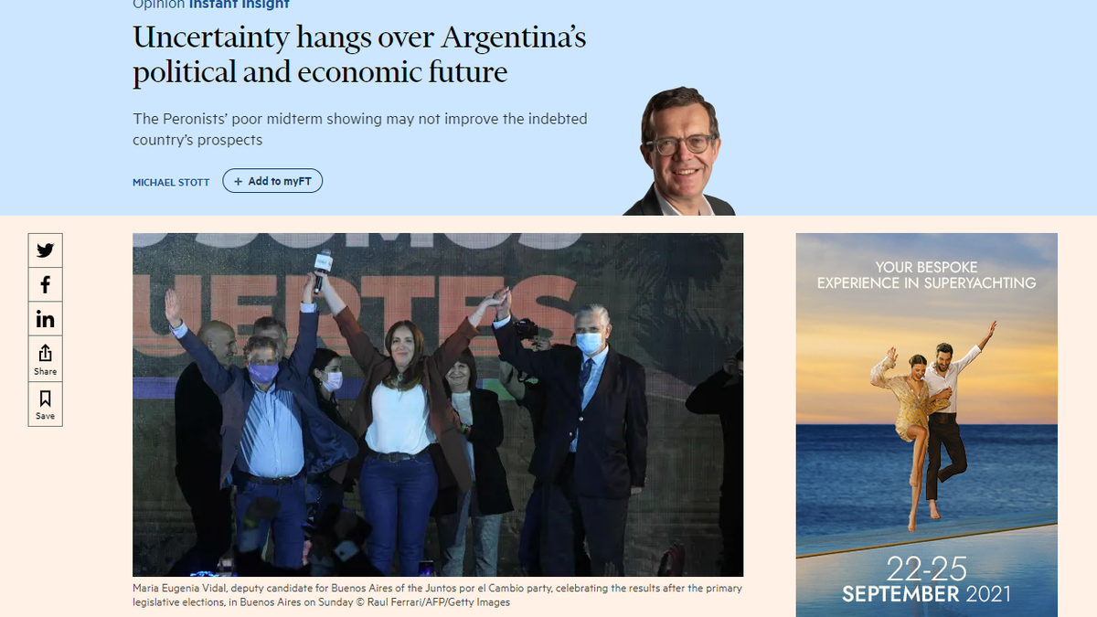 Mundo“Demasiado temprano para celebrar”: dura editorial del Financial Times tras las PASO