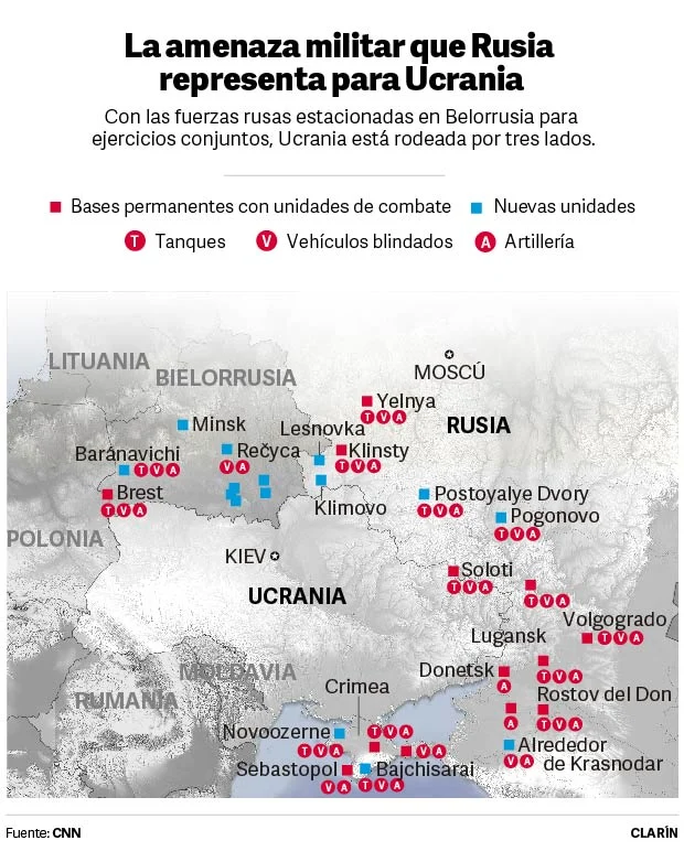 Los temores a una invasión se deben a que Rusia ha movilizado más de 130.000 soldados cerca de Ucrania. Moscú niega tener planes de invadir el país vecino pese a haber desplegado tropas en las fronteras al norte, sur y este de Ucrania y a las grandes maniobras militares iniciadas cerca.