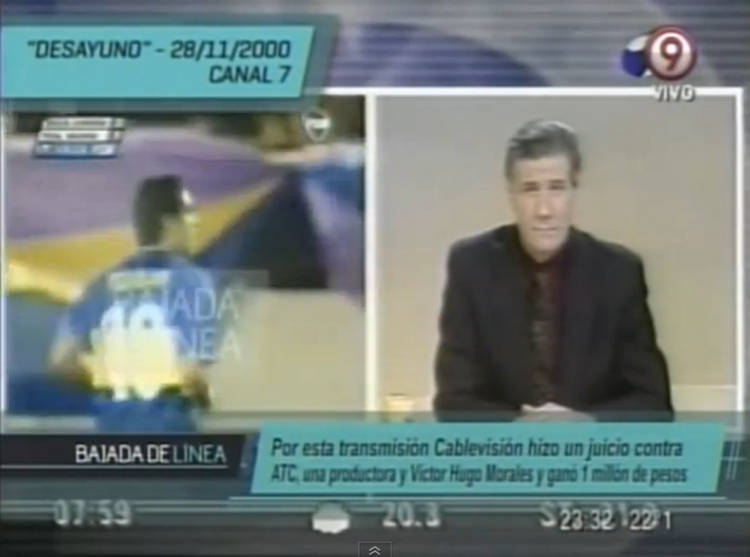 “Cablevisión informa que el embargo judicial sin allanamiento realizado en el domicilio de Víctor Hugo Morales fue ordenado por el Juzgado Nacional en lo Comercial Nro. 11, en el marco de la causa en la que el relator fue condenado, con fallo de segunda instancia, al pago de la suma de $3.500.000 por haber difundido ilegalmente imágenes de la casi totalidad del partido de fútbol entre Boca Juniors y Real Madrid en el mes de diciembre de 2001. Cabe destacar que el juicio fue iniciado por Cablevisión, como titular de los derechos de dicho partido, en el año 2001, cuando sus accionistas eran Hicks y Liberty, y la justicia le dio la razón a la compañía en todas las instancias. Según la sentencia de Cámara, el día del partido, y aun sabiendo que los derechos exclusivos no le correspondían a Canal 7 sino a Cablevisión, el relator ordenó la emisión del partido en vivo en el programa “Desayuno” que conducía”.