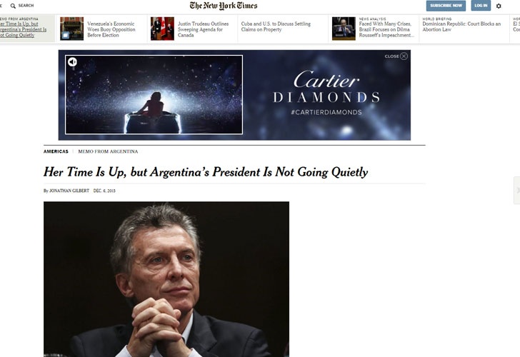 Por su parte, La Tercera calificó de “insólito conflicto abierto” el enfrentamiento entre el kirchnerismo y el macrismo y puntualizó: “La decisión tuvo lugar luego de que el presidente electo solicitara a la justicia que se adelantara a la medianoche del jueves su consideración como mandatario, lo cual tuvo un dictamen favorable”. Además, mencionó que “la insólita polémica, con tintes de sainete, que ha empañado la transición argentina se agudizó en las últimas horas”. “La polémica, que los argentinos han seguido atónitos, ha puesto en evidencia la debilidad de las instituciones en Argentina”, añadió el medio trasandino.