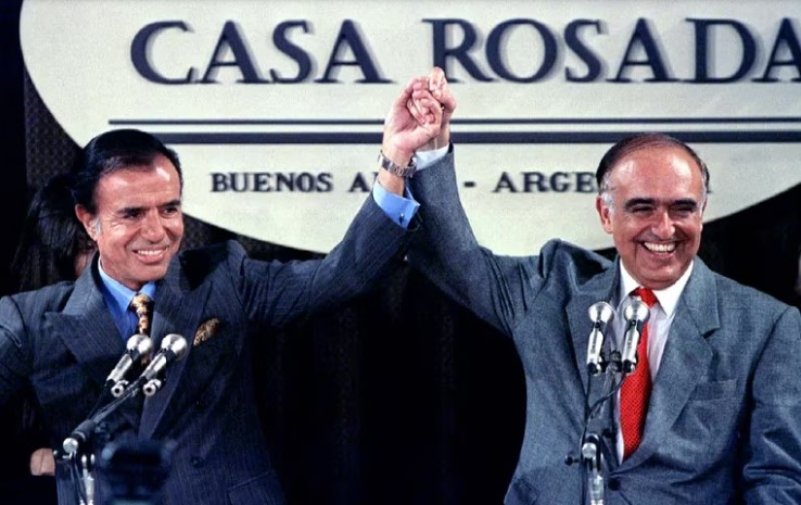 En su primer mandato, el ex mandatario riojano se había impuesto en 1989 con el 47,49% sobre el radical Eduardo Angeloz. Menem -candidato del entonces Frente Justicialista de Unidad Popular (FREJUPO)- había tenido que asumir cinco meses antes por la renuncia anticipada de Alfonsín, producto de la hiperinflación que se vivía en ese momento.