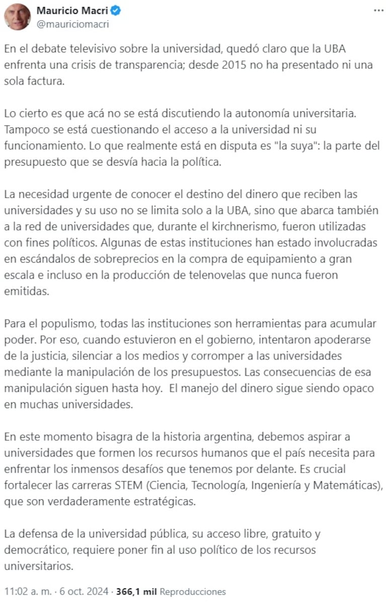A pesar del respaldo explícito al veto, el PRO mantiene una postura crítica hacia algunos aspectos de la medida. En el comunicado que se espera difundir en las próximas horas, se planteará la necesidad de reformar el sistema universitario para evitar lo que consideran un “uso político” de los recursos destinados a la educación pública. Según Mauricio Macri, es fundamental que los fondos se utilicen de manera eficiente y se evite el clientelismo político.