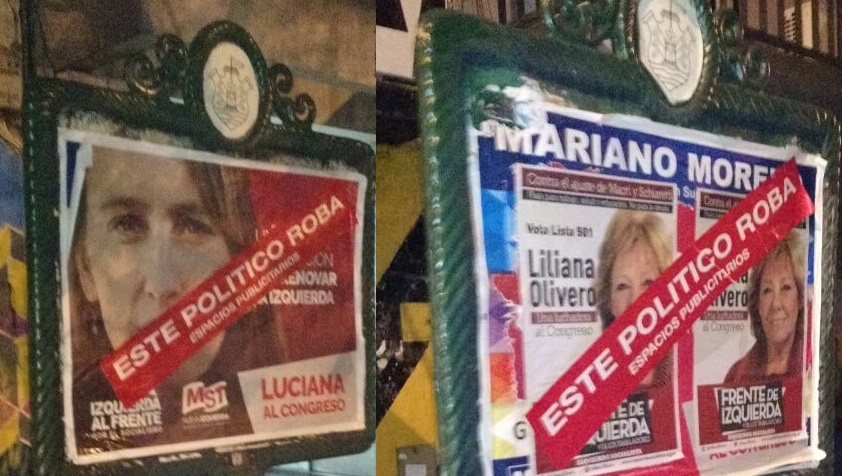 “La faja que reza ´Este político roba´ se viene implementando aproximadamente desde 2011. Lo aplicamos en 2013, 2015 y ahora en estas campañas electorales. Lo hacemos para que la gente en la calle sepa que estas agrupaciones políticas, no contratan nuestros servicios sino que roba ese espacio publicitario, tapando carteles de academias de música, institutos privados de gastronomía, y bandas de cuartetos, entre otros. No importa de qué sea. Y ocurre que cuando uno contacta a sus referentes telefónicamente para instarlos a desistir en esa acción, nos contestan que la calle es de ellos y no quieren entrar en razón. Pero esos son espacios privados, nosotros pagamos impuestos y cánones municipales anuales muy altos, y tenemos todos los impuestos al día para poder ofrecer y mantener esos espacios publicitarios en la vía pública”, recordó Razquín.