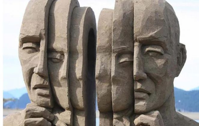 Entre las esculturas, se destaca “El hombre dividido” de Leonardo Dante Vinci, un maestro de la escultura y formador de artistas. Su pieza fragmenta al individuo de manera más o menos similar con la que Marta Minujín escinde en muchas facetas a la Venus de Milo. También en la colección de la ex mandataria hay otra escultura en madera, del artista de San Justo Vittorio Cassini. Son dos cuerpos invertidos titulados “Insieme” (juntos).