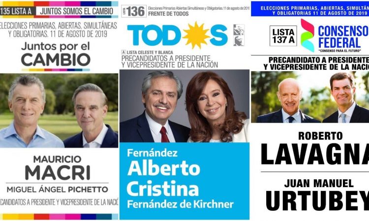 Se trata de las papeletas de Juntos por el Cambio, que lleva como candidatos a Mauricio Macri y Miguel Angel Pichetto; de Frente de Todos, con Alberto Fernández y Cristina Fernández de Kirchner; y de Consenso Federal, con Roberto Lavagna y Juan Manuel Urtubey.
