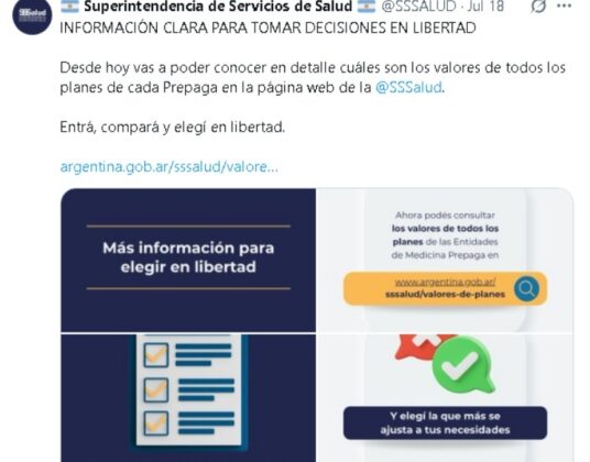 Asimismo, en base a la Resolución 645/2025 de la Superintendencia de Servicios de la Salud (SSS), las prepagas deberán informar mensualmente los valores de sus planes al Gobierno, dentro de un plazo de 5 posteriores a la publicación de la inflación.
