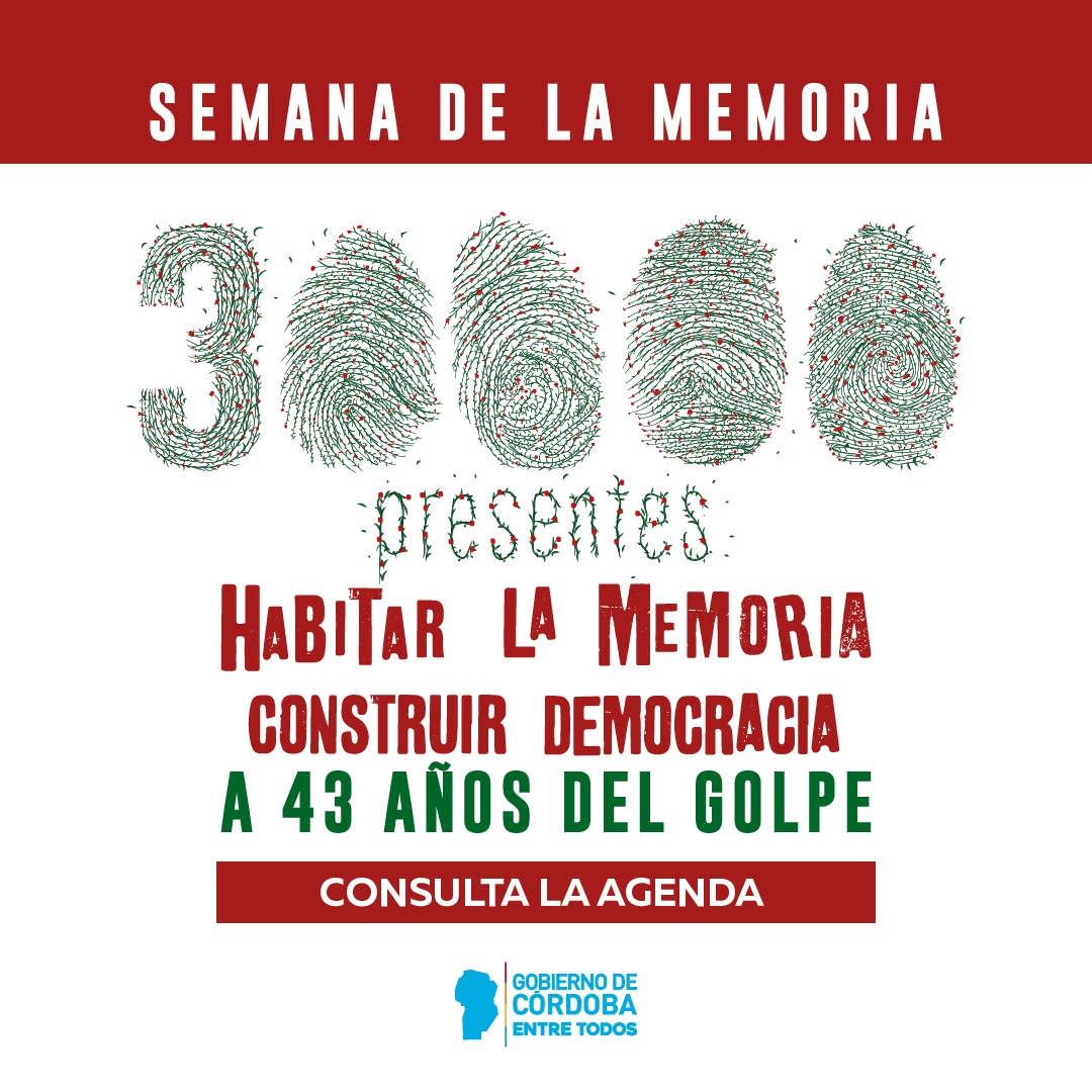 Este sábado 23 de marzo se realizará el “Festival por la Memoria”, en el marco de las actividades organizadas por el Gobierno de la Provincia de Córdoba para conmemorar el golpe cívico militar de 1976.