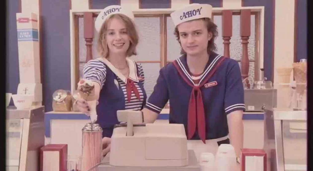 El dato para los fans es que en el patio de comidas, más precisamente en la heladería Scoops Ahoy, uno de los empleados con un look de camarero es Steve, el personaje de Joe Keety. Junto a él está una nueva integrante del elenco, Robin, interpretada por Maya Hawke.