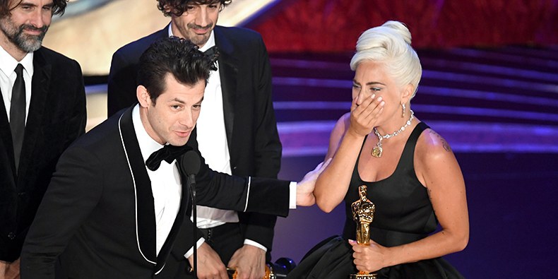 Primero, Gaga le agradeció a Bradley Cooper, su compañero de film, con el que cantó la misma canción en la ceremonia. “No hay una sola persona en el planeta con quien podría haber cantado esta canción, solo vos”, aseguró, entre lágrimas, la compositora junto a Mark Ronson, Anthony Rossomando y Andrew Wyatt.