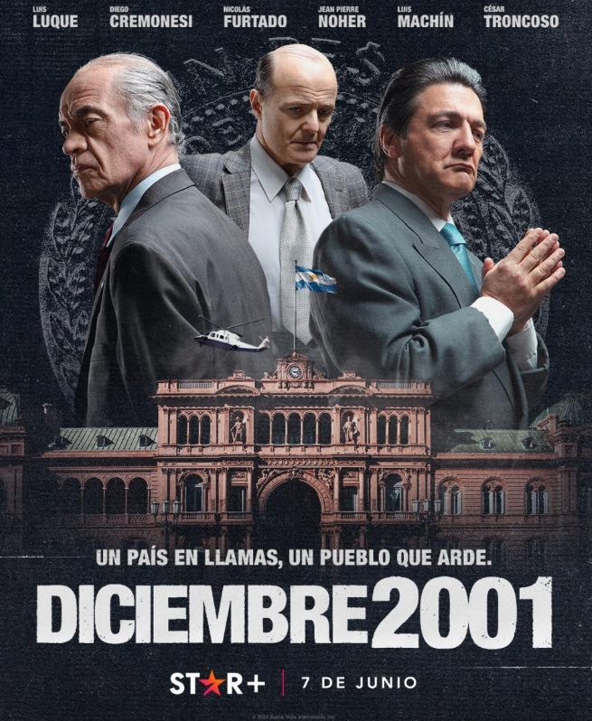 Así comienza Diciembre 2001 y así transcurrieron los días en la Argentina en ese período que quedara marcado en la historia. La serie que estrenó Star+ cuenta con seis capítulos de poco más de 40 minutos cada uno, basados en el libro El palacio y la calle, de Miguel Bonasso. En la ficción se siguen los pasos de Javier Cach, asesor de la Jefatura de Gabinete, cuyas convicciones y deseos deben dar lugar a los sinsabores permanentes a los que lo expone la práctica de gobierno, y enfrentar una de las peores crisis económicas, políticas y sociales que el país haya visto en su historia, con la renuncia de un Presidente de manera anticipada, la muerte de decenas de argentinos por la represión policial, una sociedad a la que le arrebataron sus ahorros, y la excepcionalidad histórica de “cinco presidentes en una semana”, que en realidad fueron 11 días. Así, se van sucediendo figuras clave de la política de esos días en la pantalla, caracterizados por un elenco de primerísimos actores. Aquí, uno por uno, quiénes son los actores de la serie.