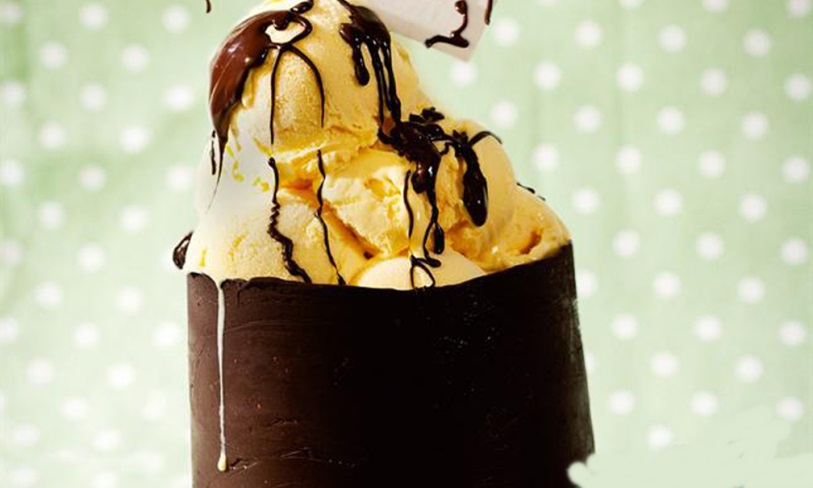 • Hacer bochas de helado y volcarlas dentro del tubo de chocolate.