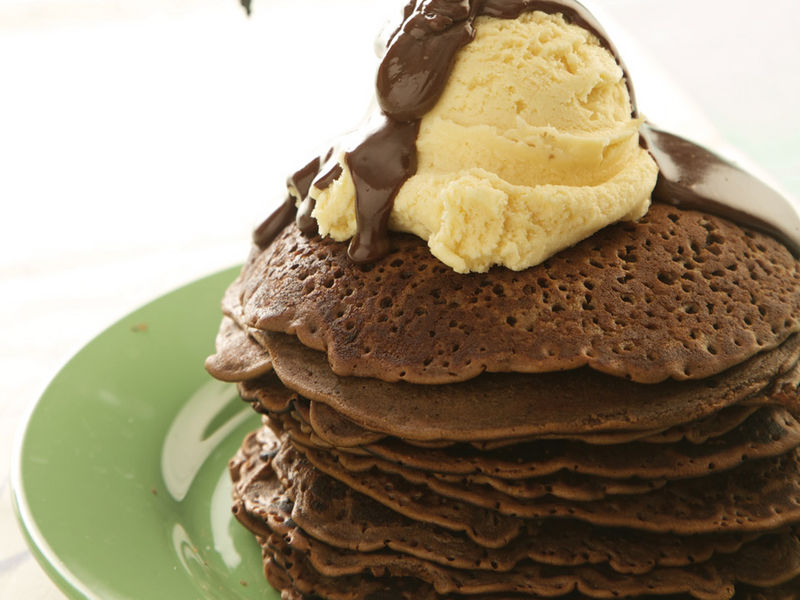 - Cuando se hayan formado pequeños agujeros dar vuelta, cocinar un minuto más y servir calientes salseados con la ganache hecha mezclando la crema caliente con el chocolate troceado.