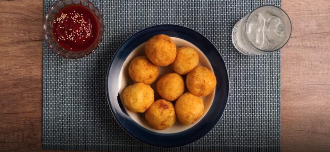 - Hacerle una capa de puré de papas a cada albóndiga, pasarlas por un bowl con harina y freír en abundante aceite caliente.