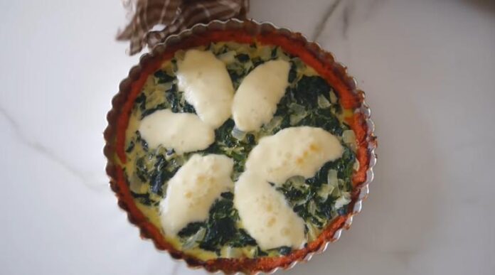 - Para preparar el relleno batir dos huevos con una cucharada de queso crema hasta que se integre, salpimentar y agregar la espinaca, el ajo y la cebolla, integrar bien.