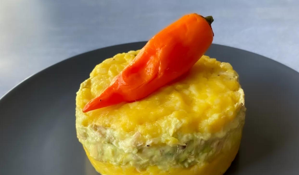 - Incorporar a la papa el ají amarillo, el aceite y el limón. Mezclar bien y salpimentar al gusto. En un bol aparte, mezclar el pollo desmenuzado, la palta, la mayonesa, el limón y la cebolla picada fina. Salpimentar e integrar bien.