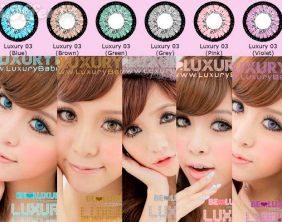 De todos los colores –incluidos el violeta y el amarillo- y casi todos los tamaños, los lentes de contacto para agrandar el iris se venden en farmacias como si fueran aspirinas y su objetivo no es otro que redondear el ojo para que parezca más abierto.