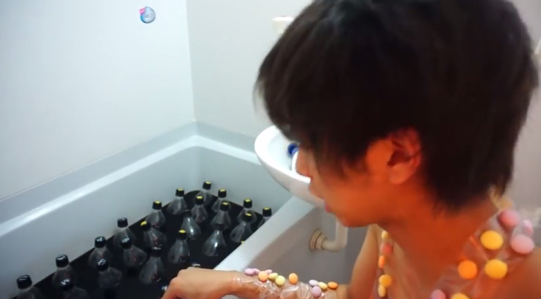 El japonés, de nombre Hajime, se pegó caramelos Mentos en todo su cuerpo y se sumergió en una bañera cubierta con Coca Cola Zero mientras documentaba su proeza en una grabación que posteriormente compartió en YouTube.