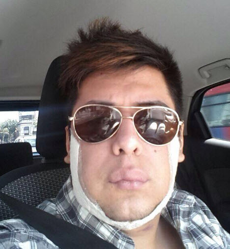 El periodista Ángel de Brito fue quien publicó la imagen del mediático, quien rápidamente se encargó de aclarar que todavía está «súper hinchado» y que aún falta que «baje todo». Además, confió en que va a quedar muy bien cuando terminen de sanar las heridas.