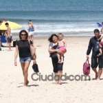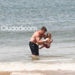 Hospedados en una suite del hotel Conrad, la conductora aprovechó las cálidas temperaturas para ir a la playa con sus pequeños. Mamá babosa, Flor observó cómo sus hijos jugaban en el agua y los fotografió con su teléfono celular.